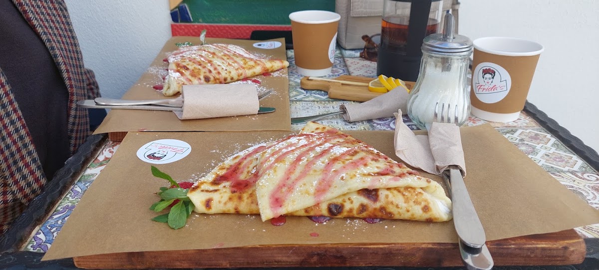 When it comes to the menu, Cafe Frida's leans into a broad appeal with crepes standing out — from savory chicken varieties to vegetarian options, along with sweet choices featuring banana and Nutella or local touches like tvorog and berries. Hot drinks like Turkish coffee, rich chocolate beverages, and an ice latte complement these offerings well. Locals seem to appreciate the balance of comfort food and specialty drinks here, making it a solid spot for brunch or a leisurely afternoon pick-me-up.